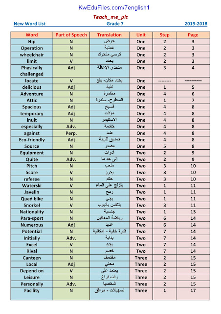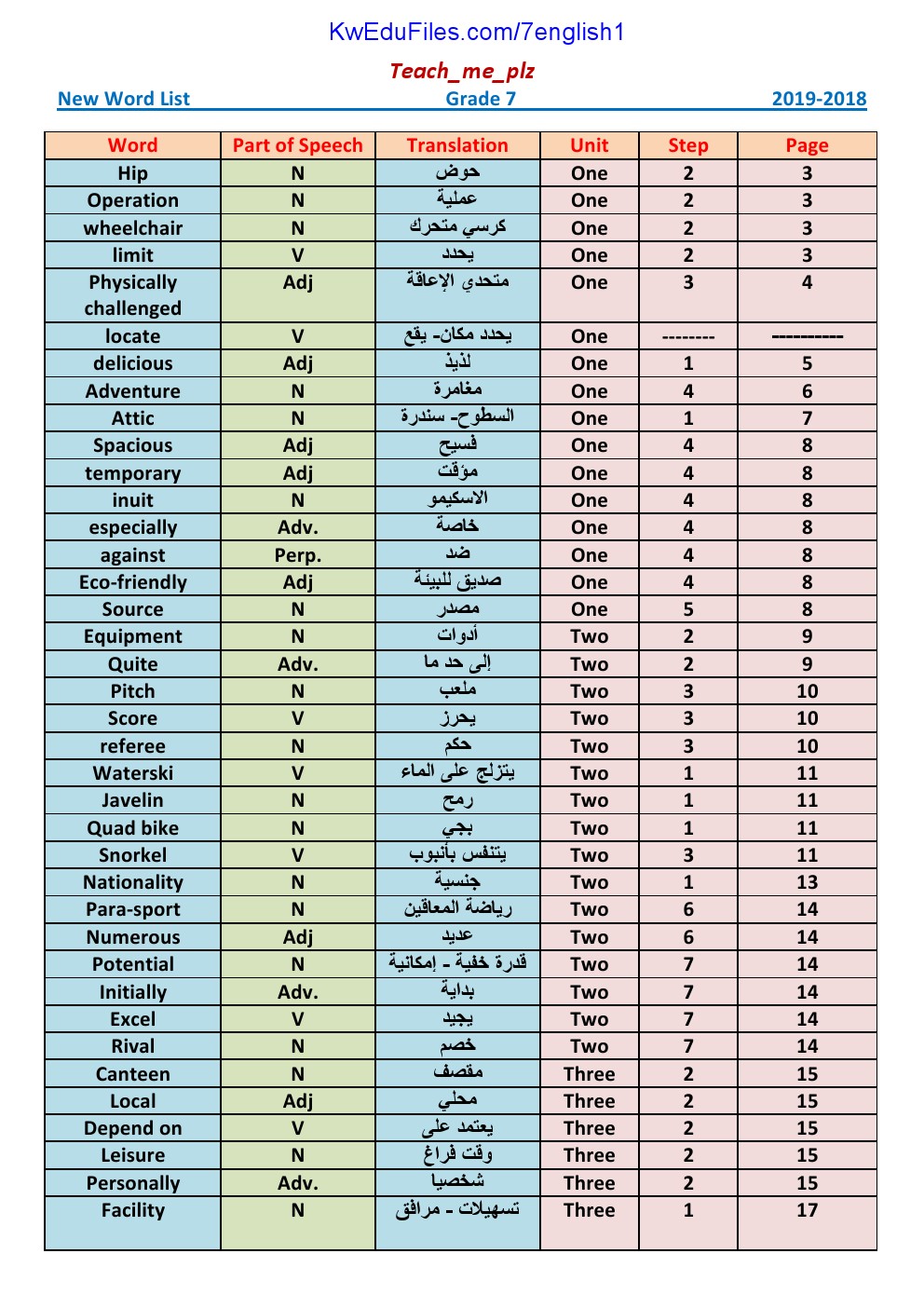 أحدث ملفات الصف السابع, لغة انجليزية, الفصل الأول