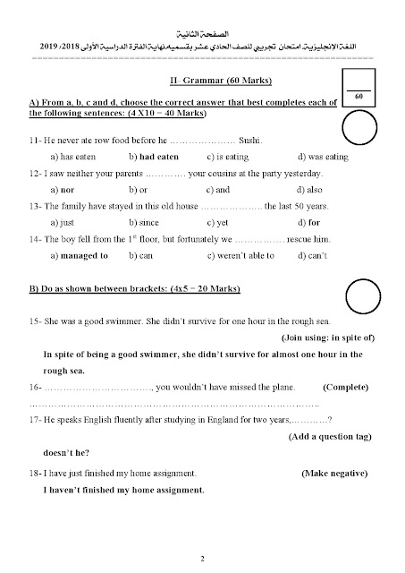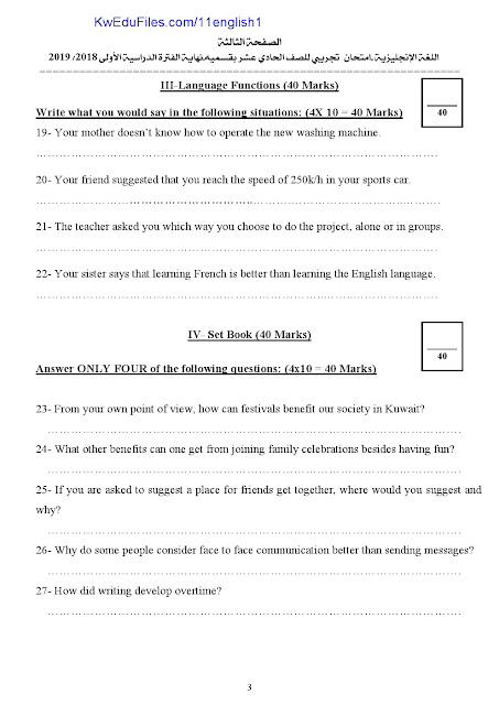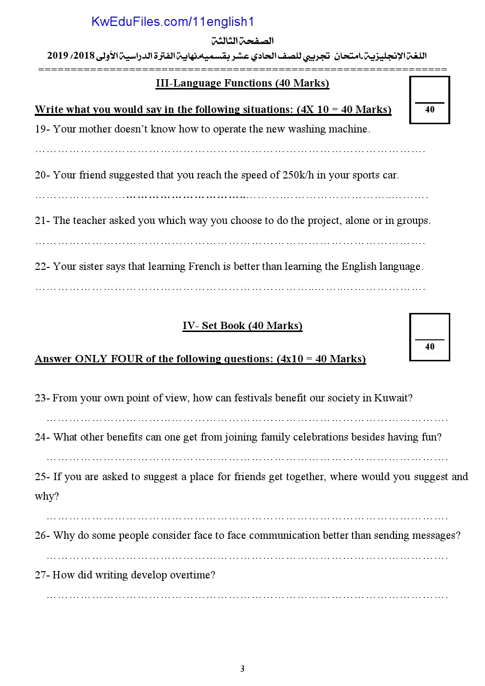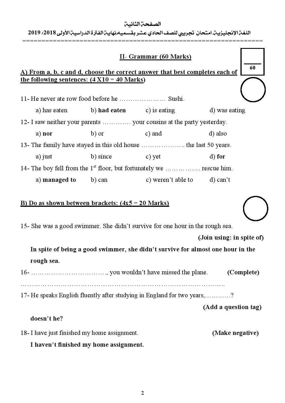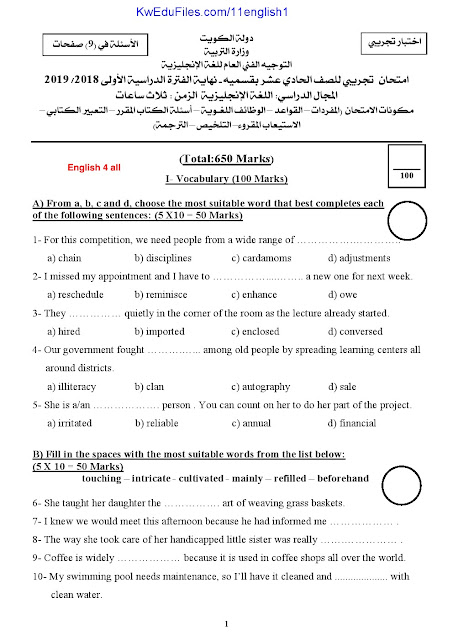 أنت هنا: موقع المناهج ⇦ المناهج الكويتية ⇦ الصف الحادي عشر ⇦ لغة انجليزية ⇦ الفصل الأول ⇦ الامتحان النهائي |