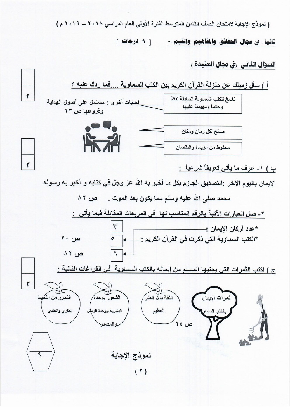 8. نموذج إجابة امتحان الفترة الأولى منطقة الأحمدي التعليمية