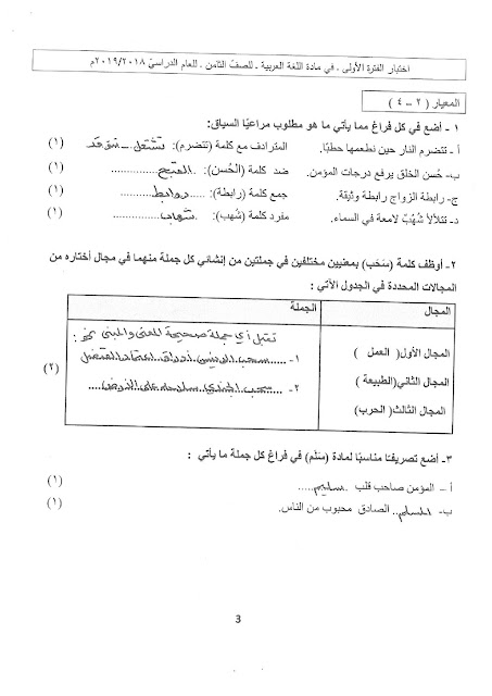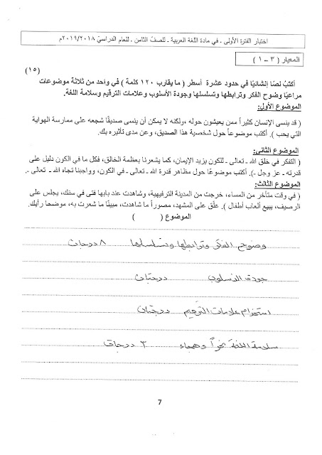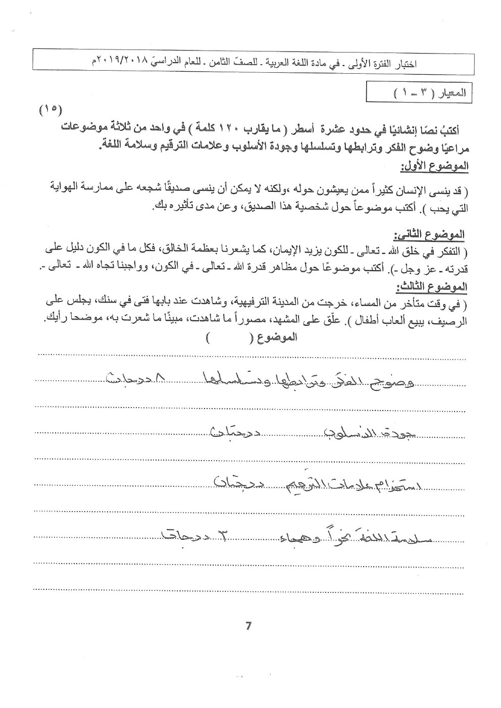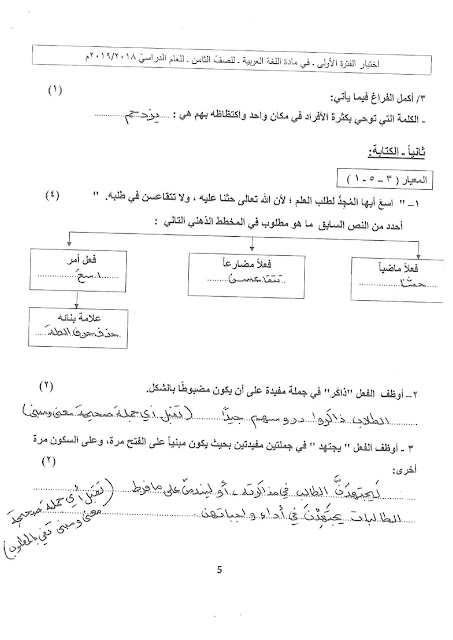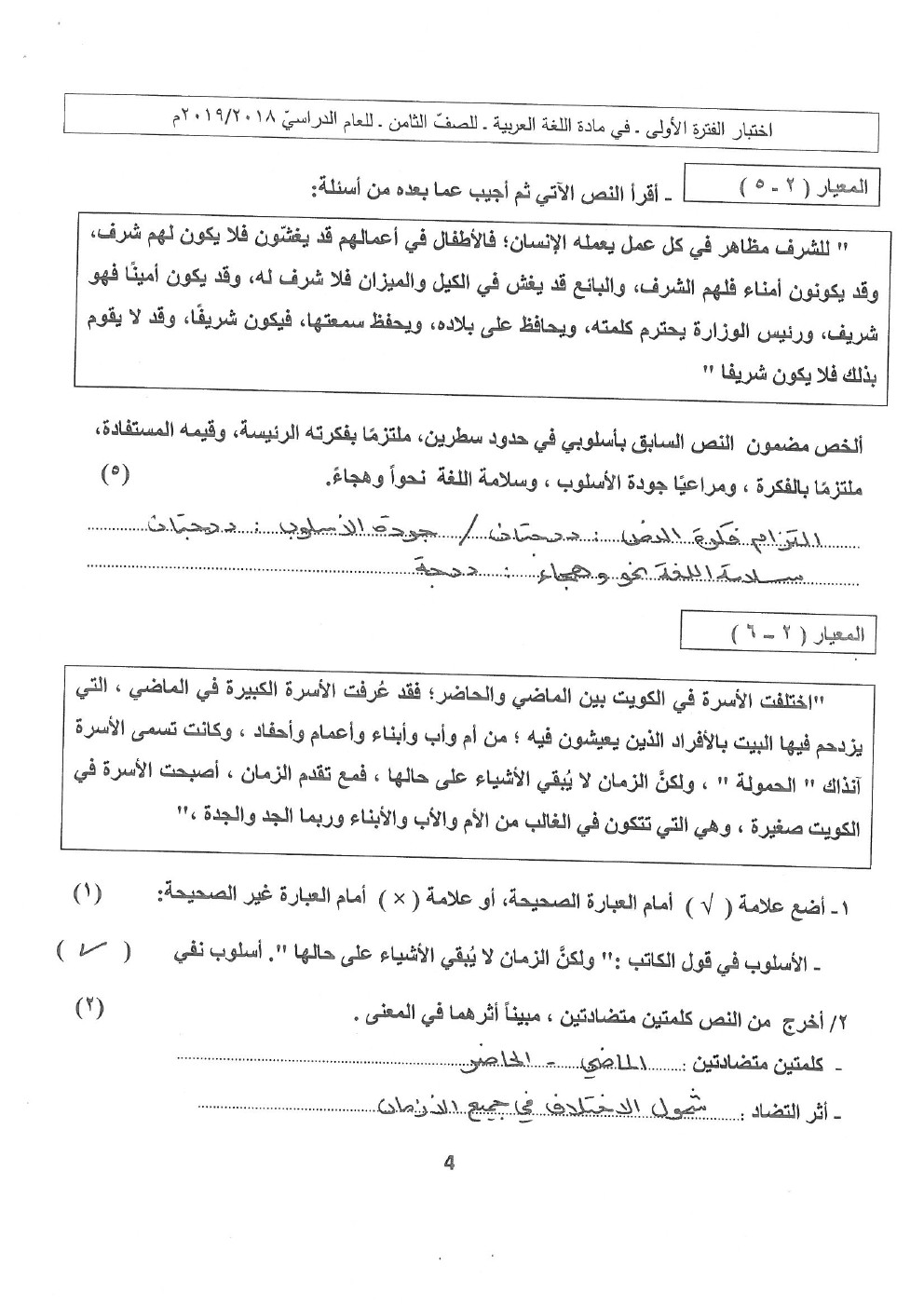 نموذج اجابة العاصمة 2018, منطقة العاصمة التعليمية, الصف الثامن, لغة عربية, الفصل الأول, 2018-2019 - المناهج الكويتية