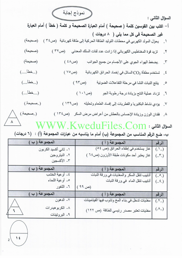 8. نموذج إجابة منطقة حولي التعليمية
