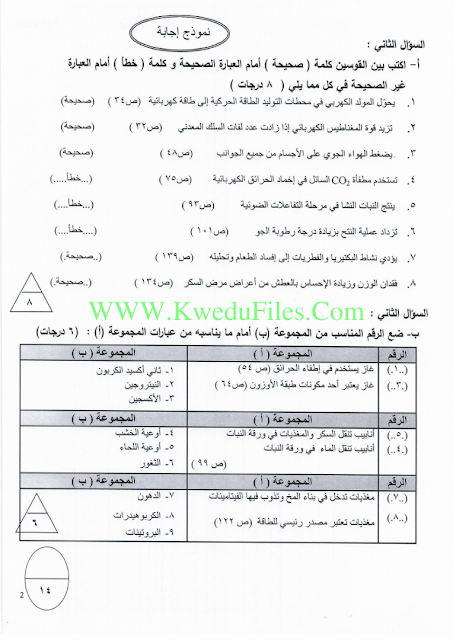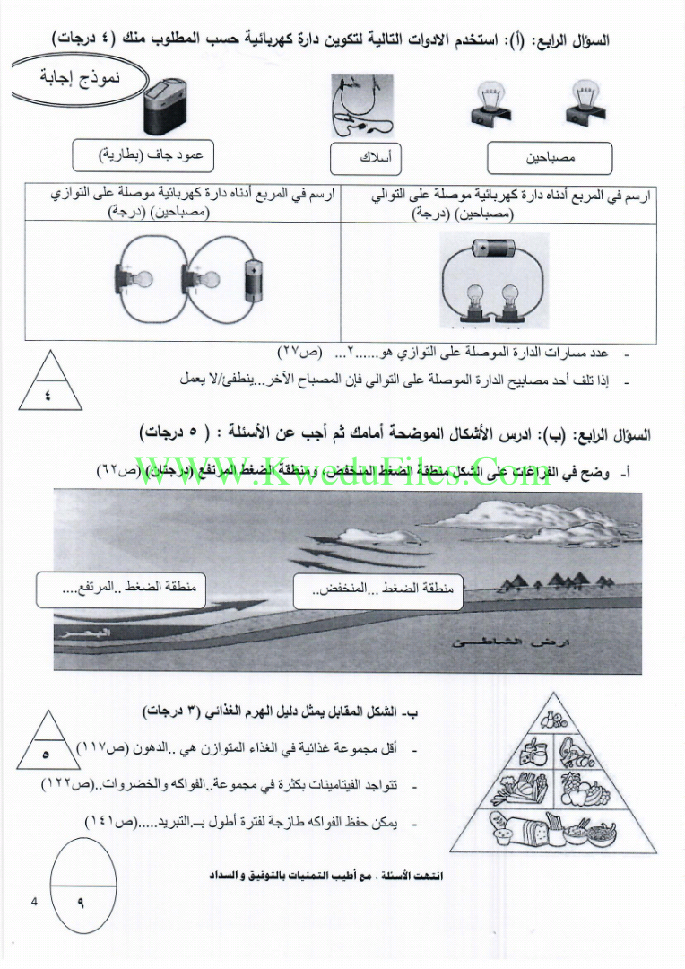 5اوراق في مادة العلوم للصف السابع للكورس الاول تتضمن نموذج اجابة منطقة الفروانية لعام 2018_2019