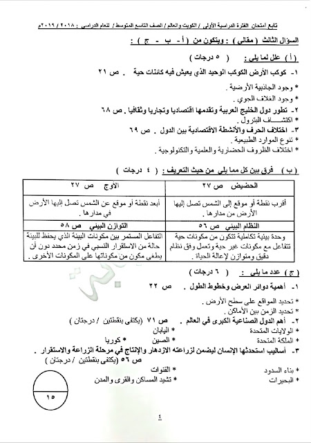 أنت هنا: موقع المناهجالمناهج الكويتية الصف التاسع اجتماعيات الفصل الأول حلول