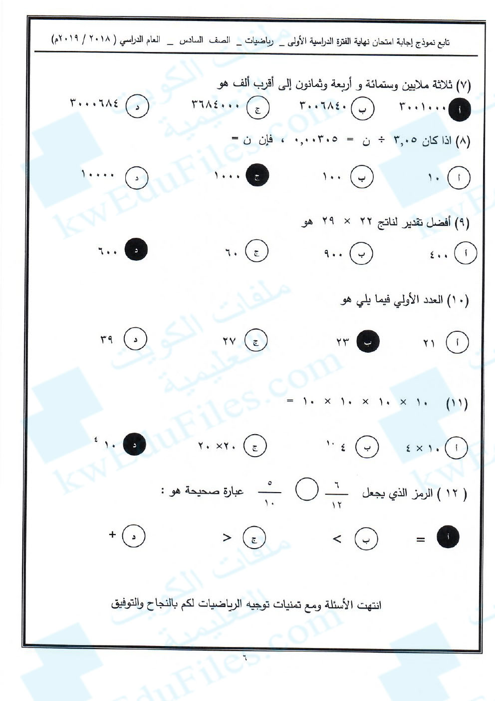 6. نموذج أسئلة منطقة مبارك الكبير التعليمية