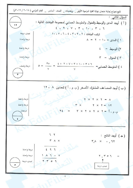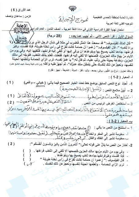 15. نموذج إجابة اختبار منطقة الجهراء التعليمية