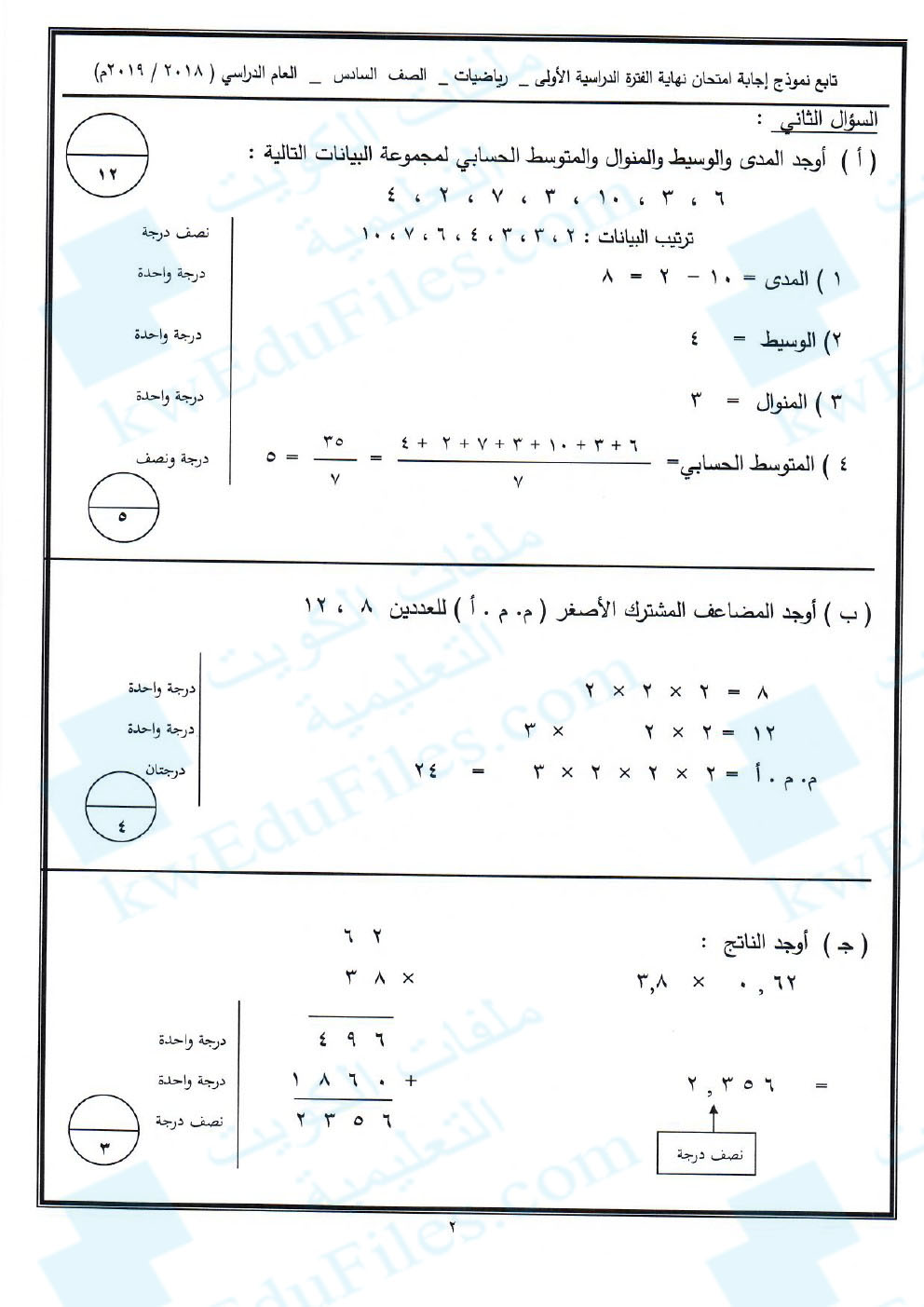 10. نموذج إجابة منطقة حولي التعليمية