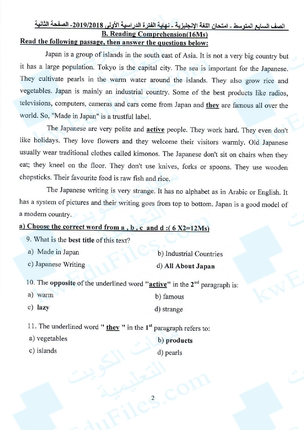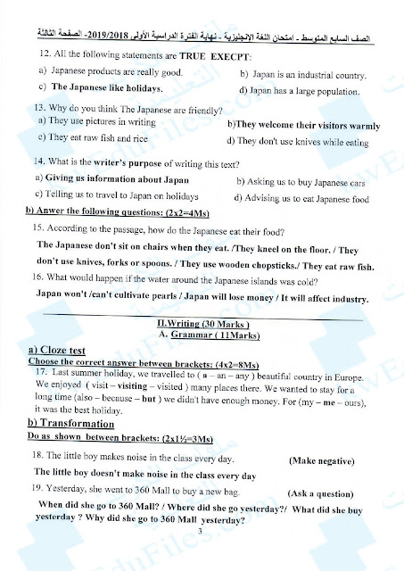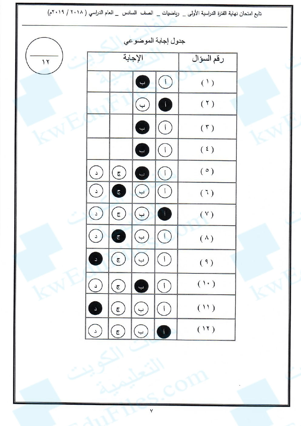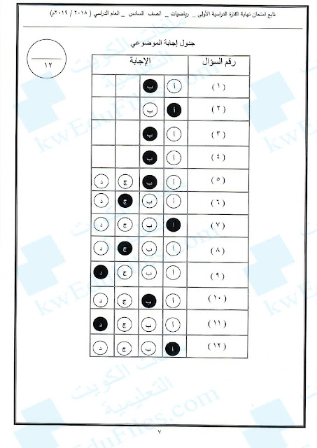 12. نموذج إجابة منطقة الفروانية التعليمية