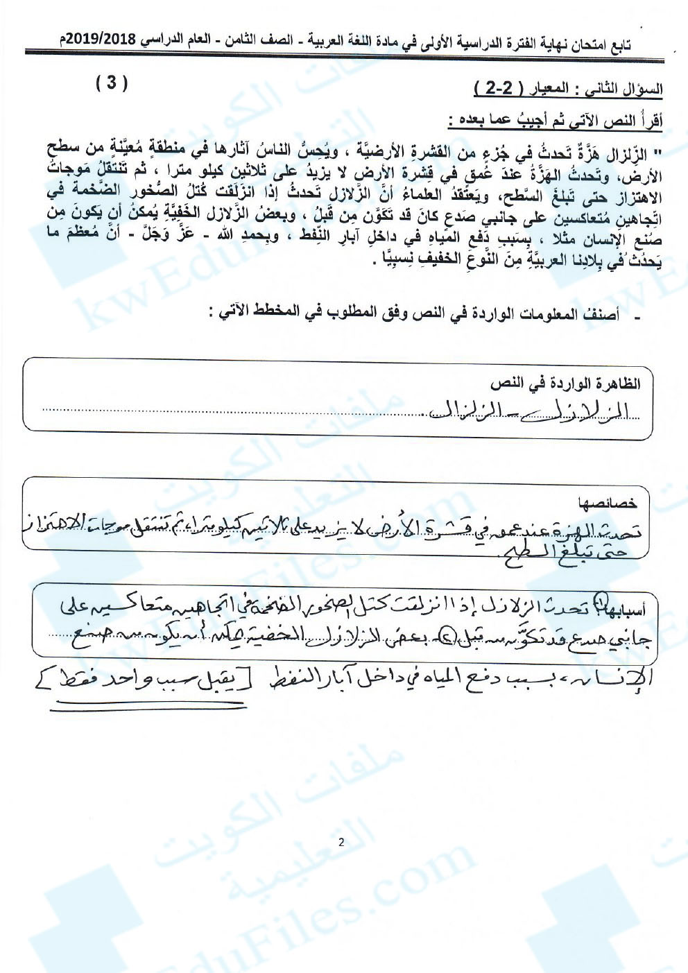 3. نموذج إجابة منطقة الفروانية التعليمية