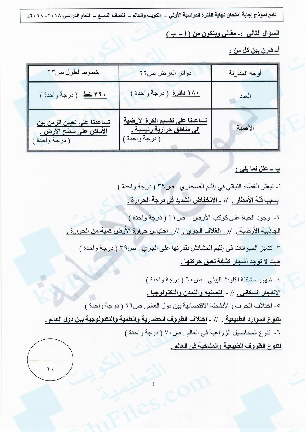 معلومات الملف: نموذج اجابة الفروانية 20182019 الفصل الاول من العام الدراسي 2018-2019 وفق المنهاج وفق المنهاج الكويتي