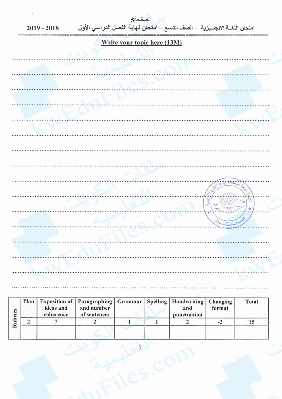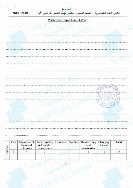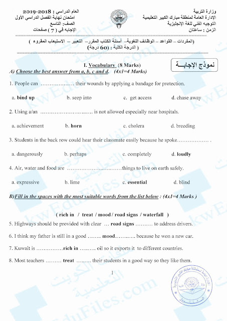 معلومات الملف: نموذج اجابة منطقة مبارك التعليمية 2018 / 2019 الفصل الاول من العام الدراسي 2018-2019 وفق المنهاج وفق المنهاج الكويتي | ||
