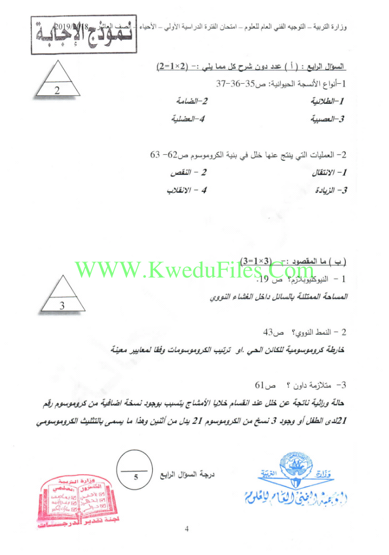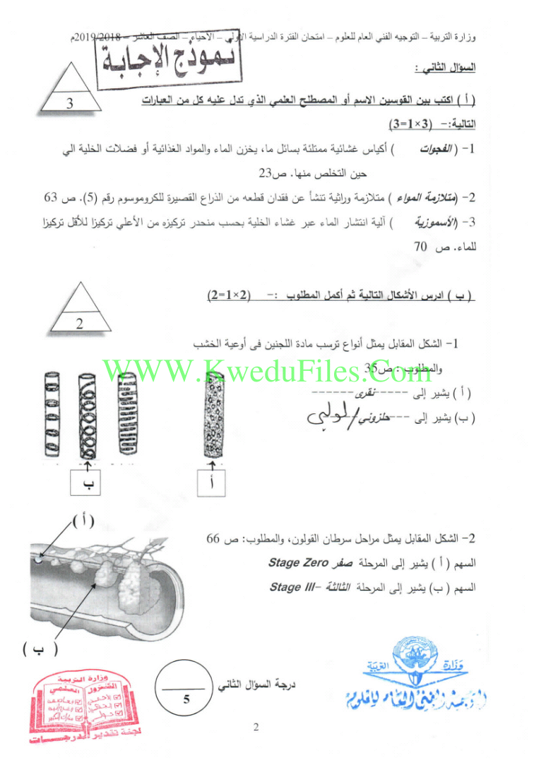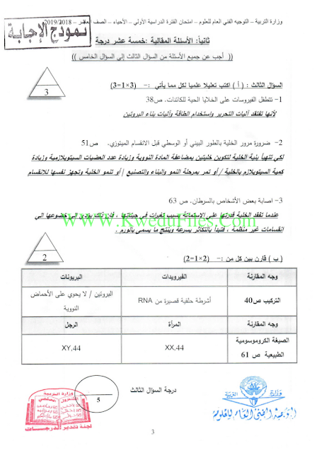 تم إيجاد الملف: نموذج اجابة الاحياء لعام 2018/
