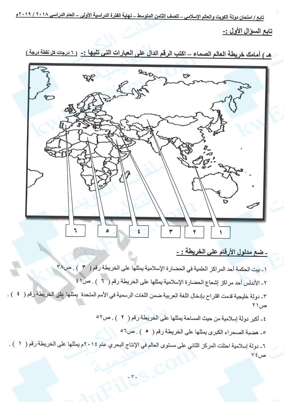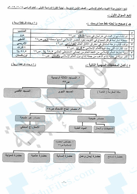 9. نموذج إجابة منطقة الفروانية التعليمية