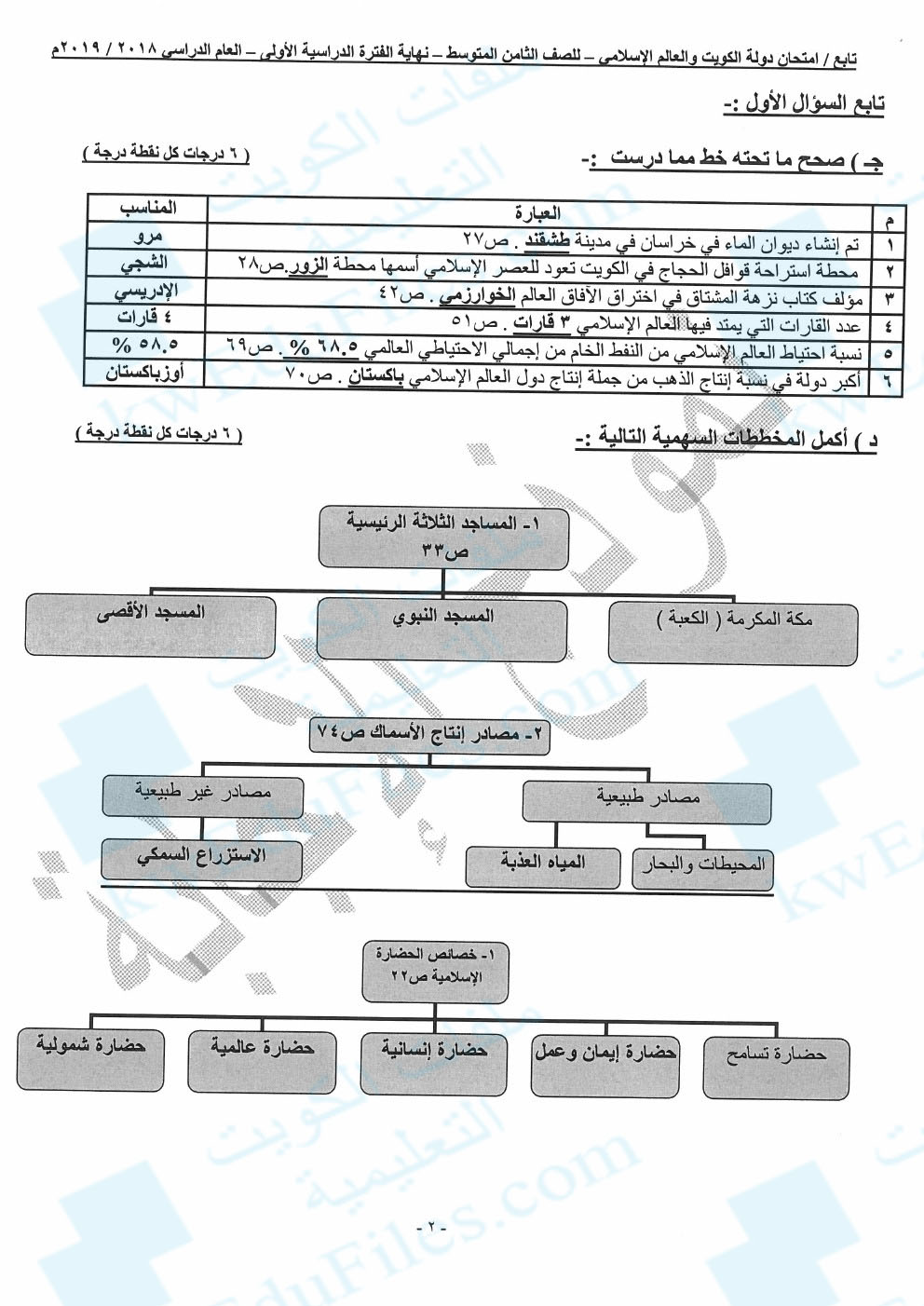1. أوراق عمل على الاختبار القصير أسس الحضارة الإسلامية والديانات السماوية