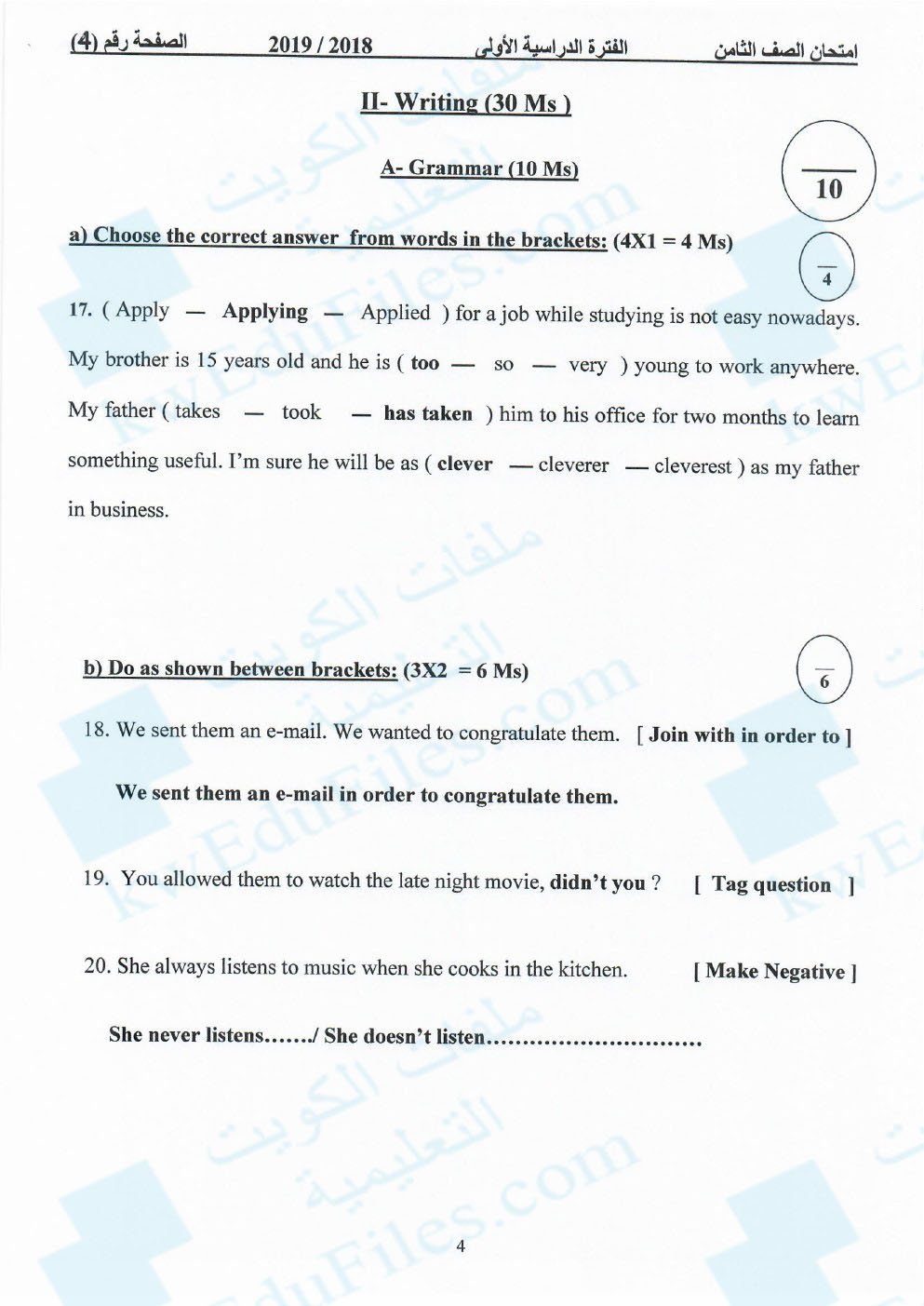 6. نموذج إجابة منطقة حولي التعليمية