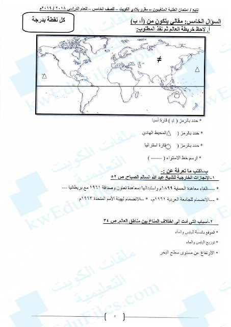 5. رياضيات, الفصل الأول, 2025-2026, نموذج اختبار تجريبي لمنطقة الفروانية التعليمية