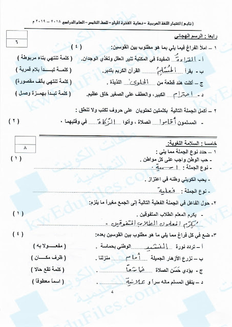 نموذج اجابة الفروانية 2018, منطقة الفروانية التعليمية, الصف الخامس, لغة عربية, الفصل الأول, 2018-2019 - المناهج الكويتية