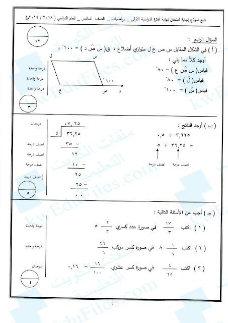 12. نموذج إجابة منطقة الفروانية التعليمية