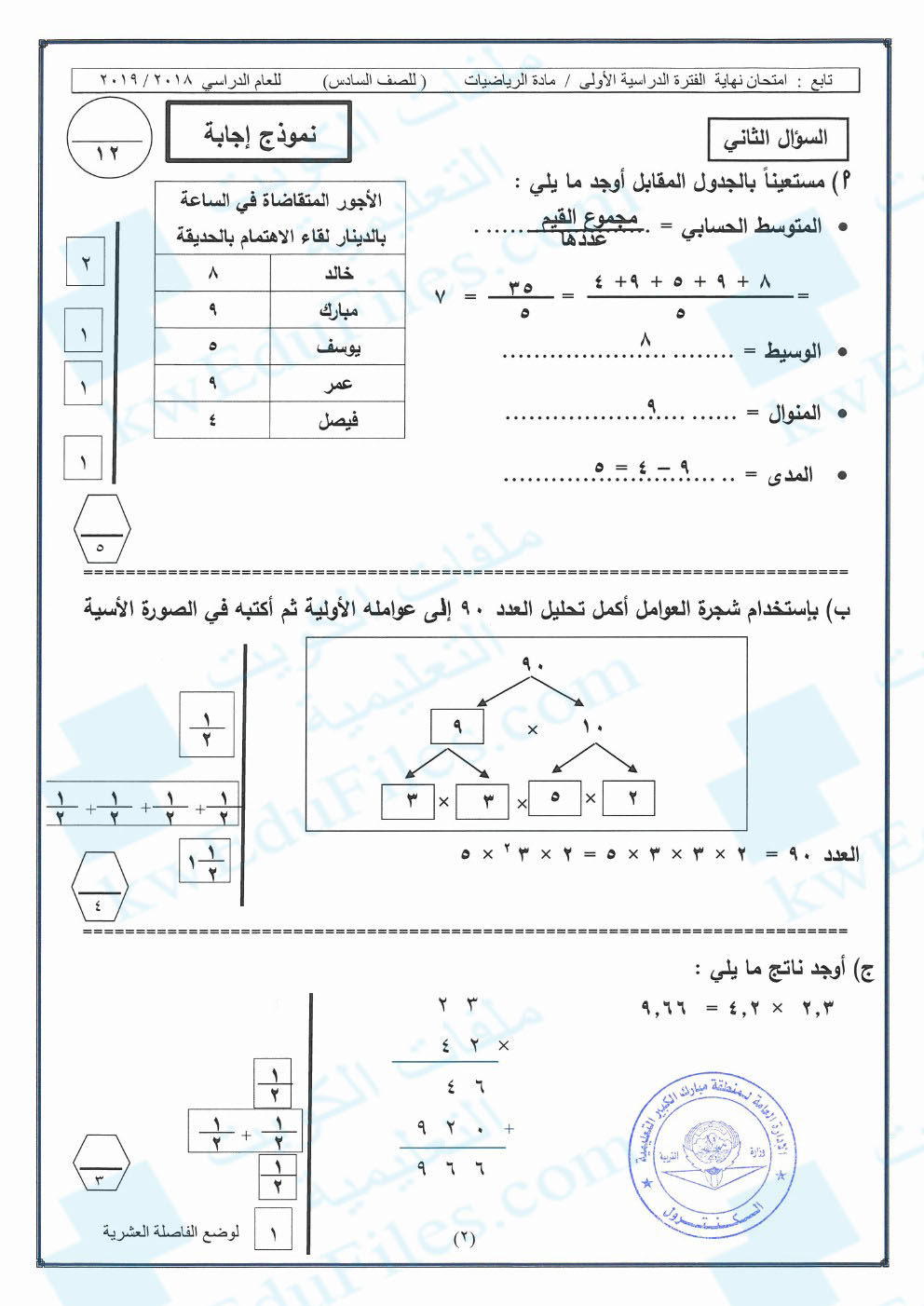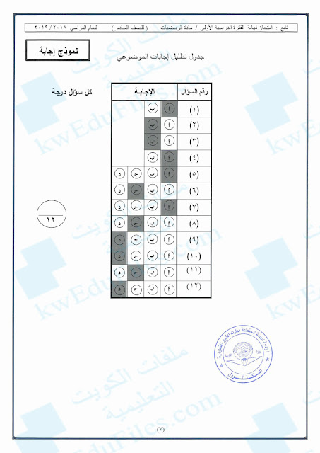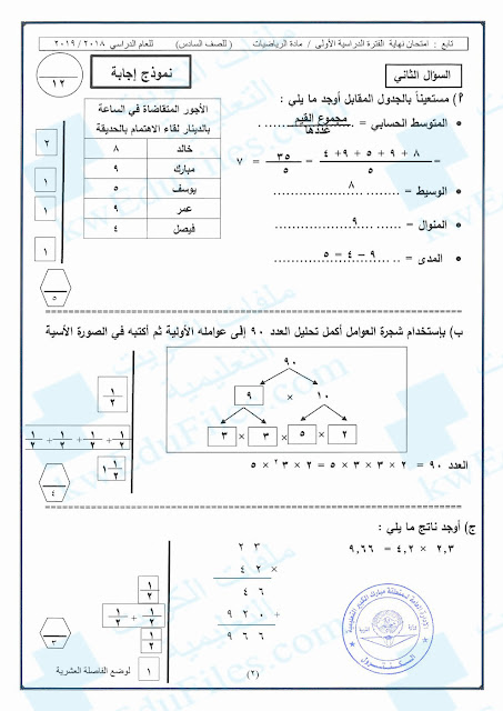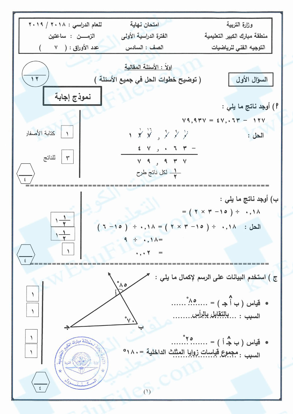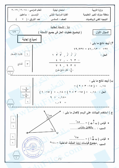 1. نموذج إجابة منطقة الفروانية التعليمية