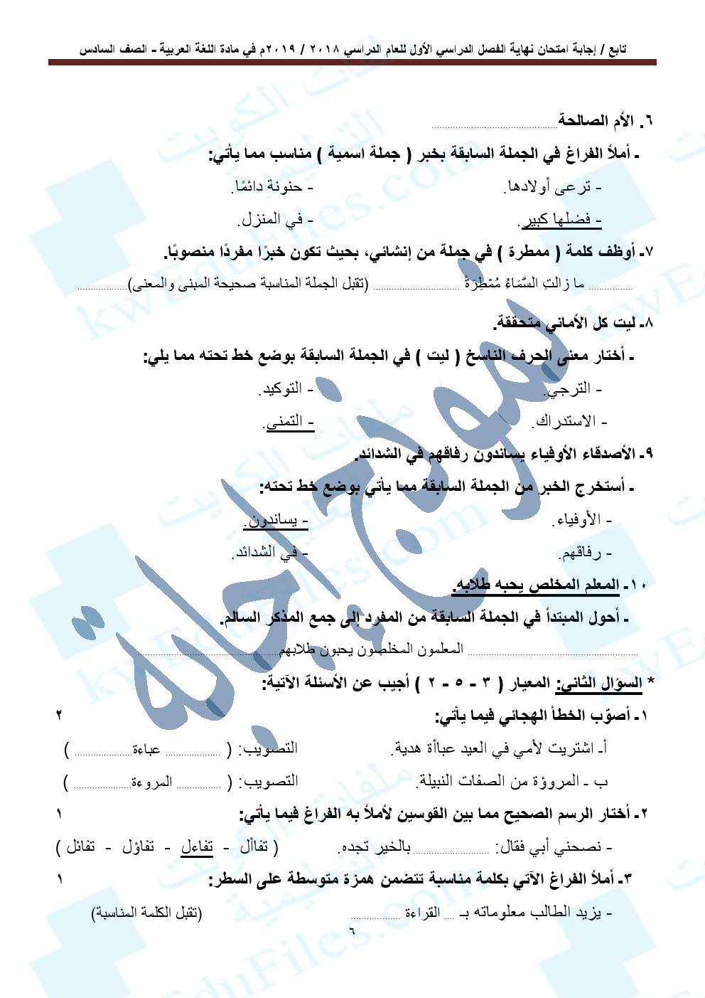 أحدث ملفات الصف السادس