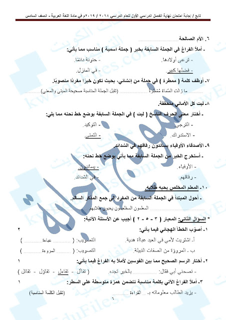 أنت هنا: موقع المناهجالمناهج الكويتية الصف السادس لغة عربية الفصل الأول حلول