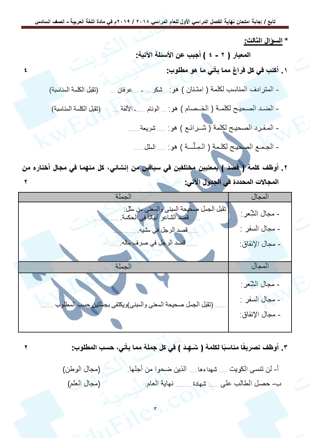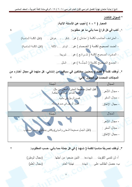 1. نموذج إجابة منطقة الفروانية التعليمية