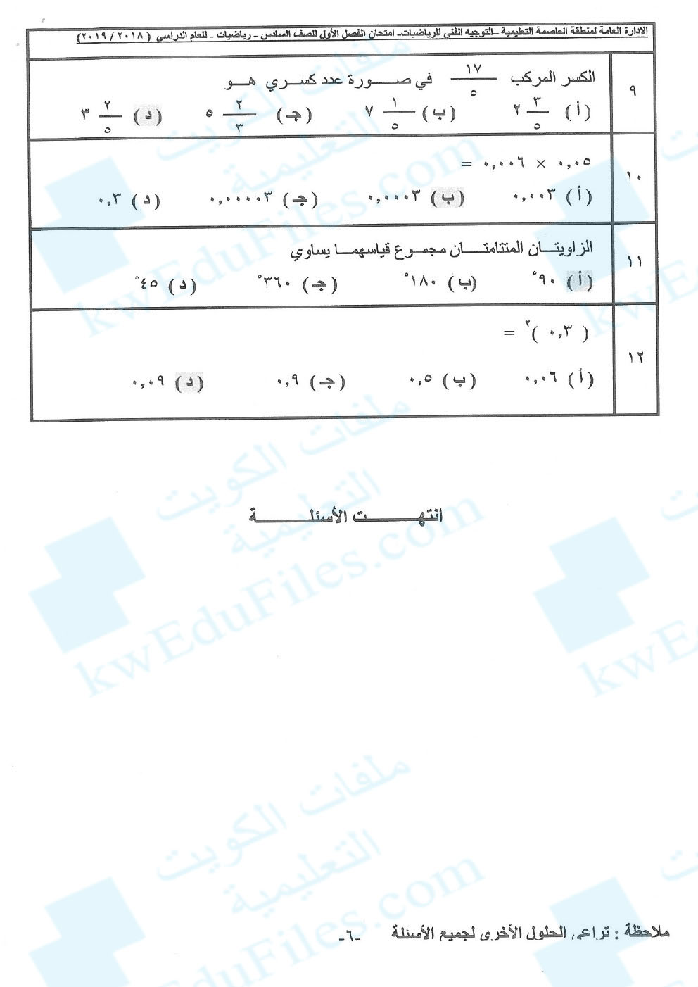 أحدث ملفات الصف السادس, رياضيات, الفصل الأول