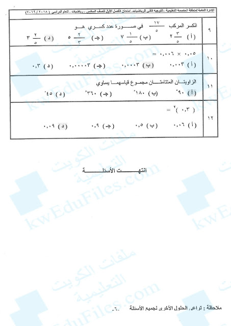 أنت هنا: موقع المناهجالمناهج الكويتية الصف السادس رياضيات الفصل الأول حلول