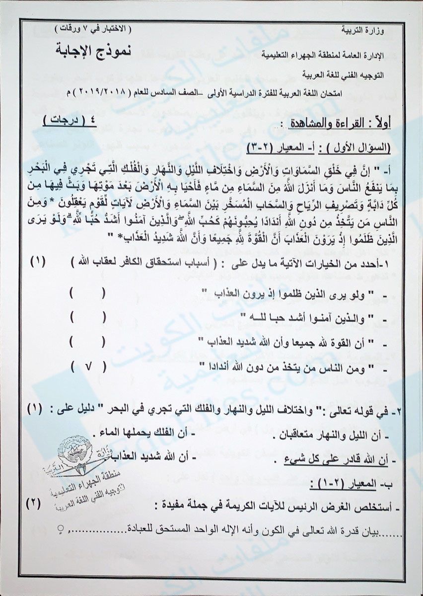تم إيجاد الملف: نموذج اجابة الجهراء 2018/