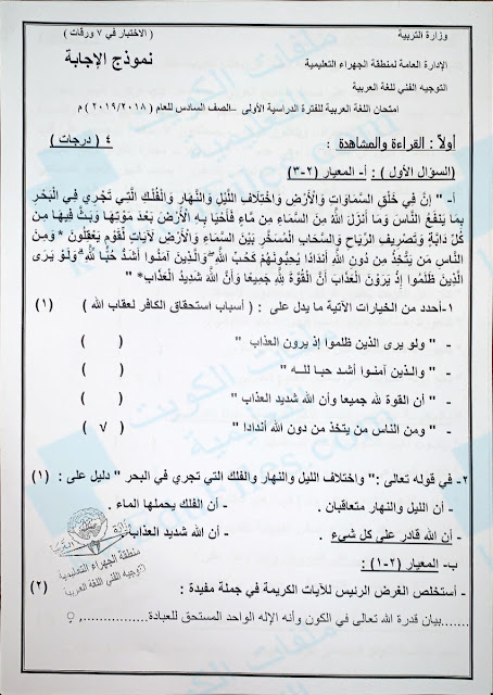 1. نموذج إجابة منطقة الفروانية التعليمية