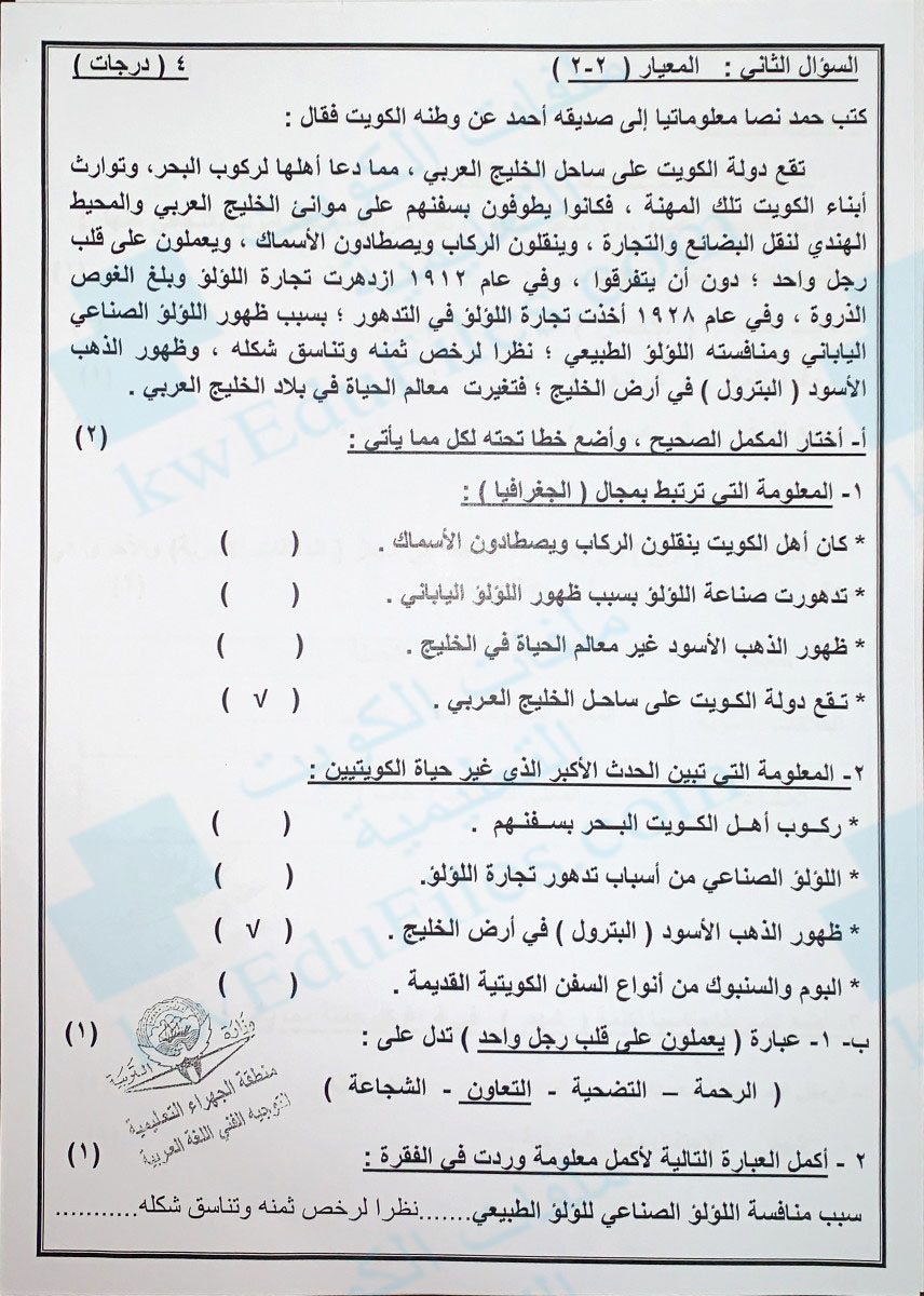 12. نموذج أسئلة منطقة الجهراء التعليمية