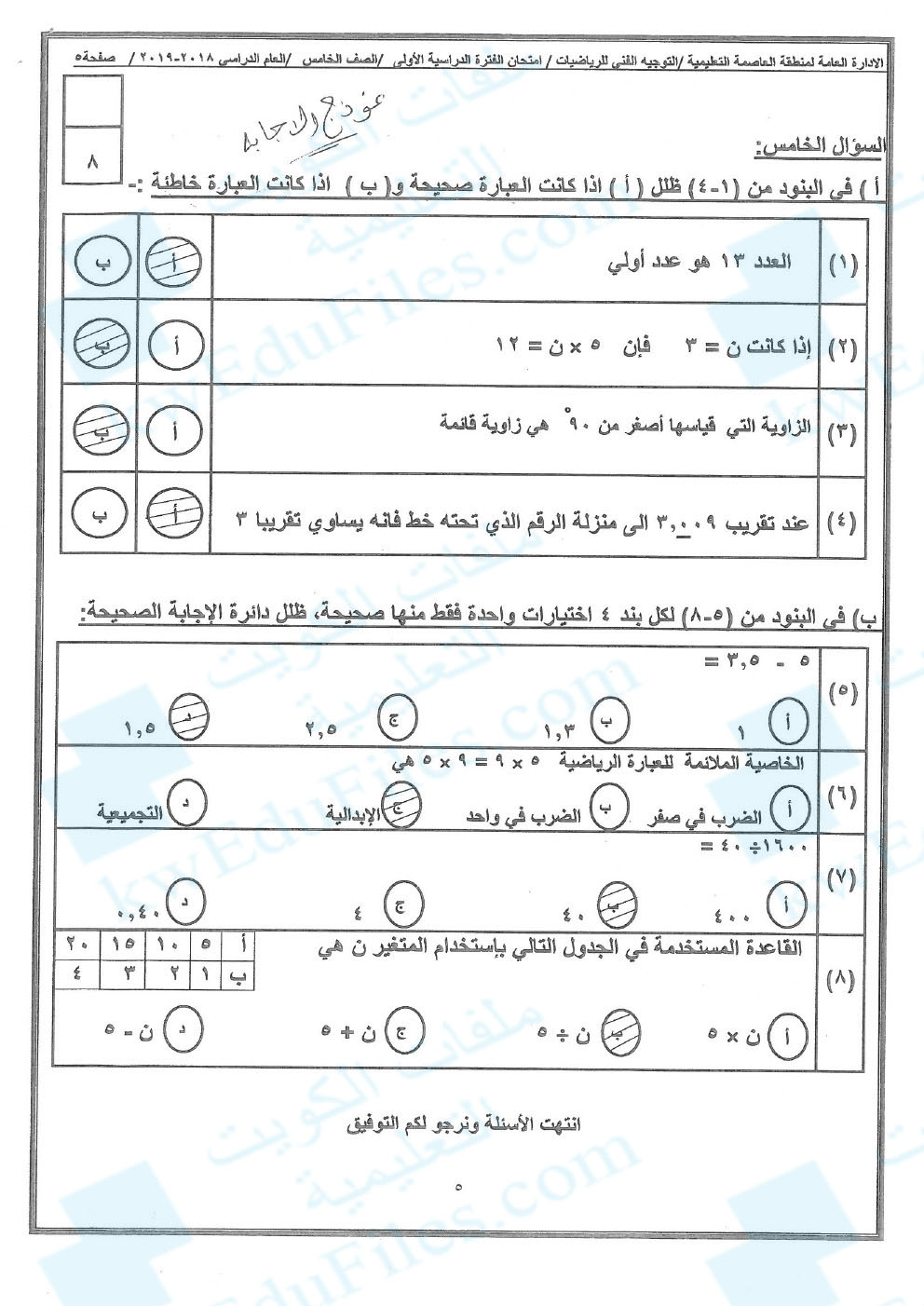 10. الصف العاشر, علوم, نموذج إجابة الاختبار النهائي الرسمي المعتمد من التوجيه الفني العام