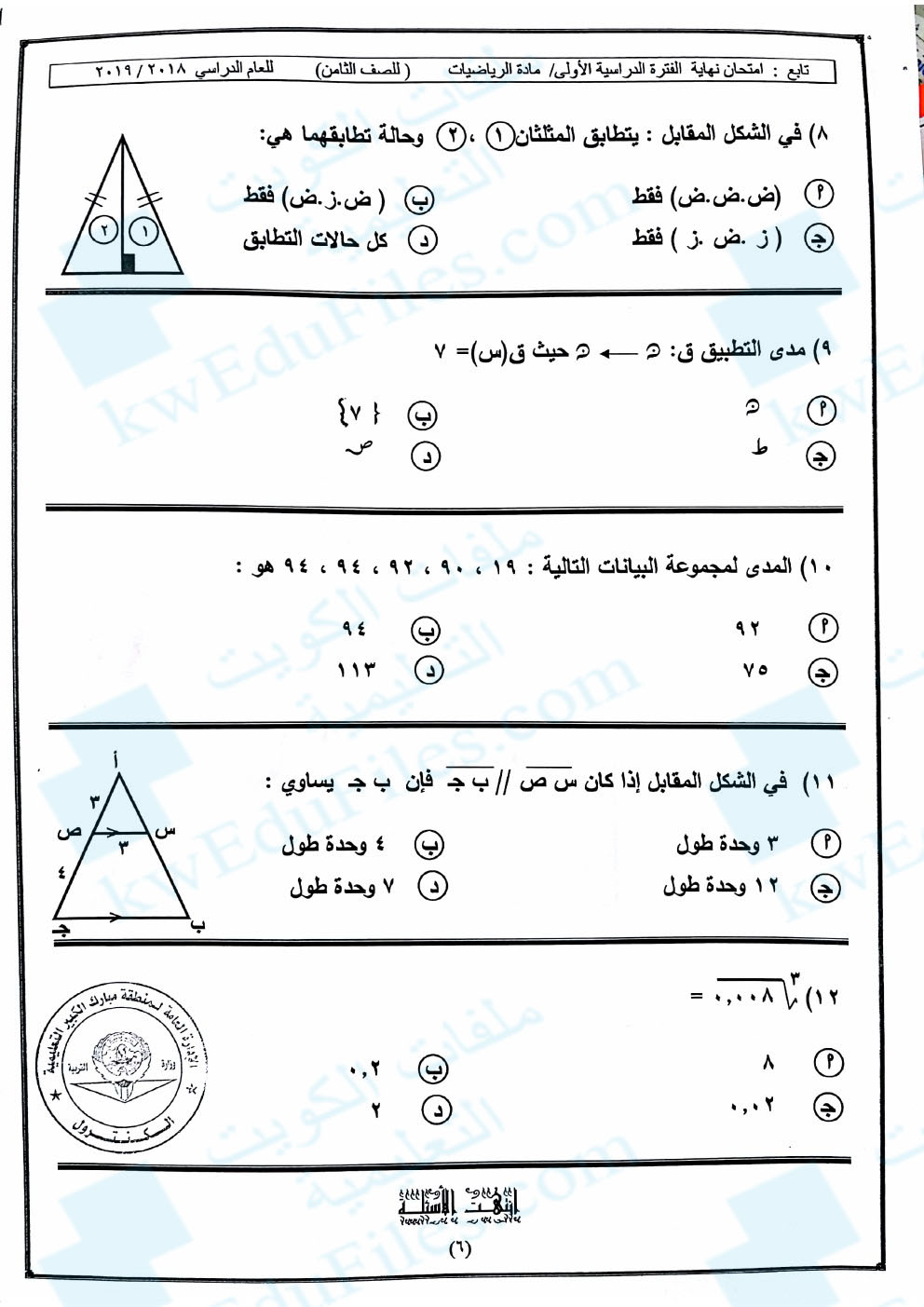 8. نموذج إجابة منطقة مبارك الكبير التعليمية