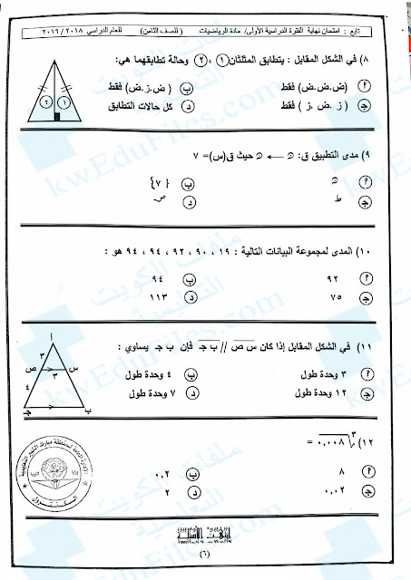 أنت هنا: موقع المناهجالمناهج الكويتية الصف الثامن رياضيات الفصل الأول حلول