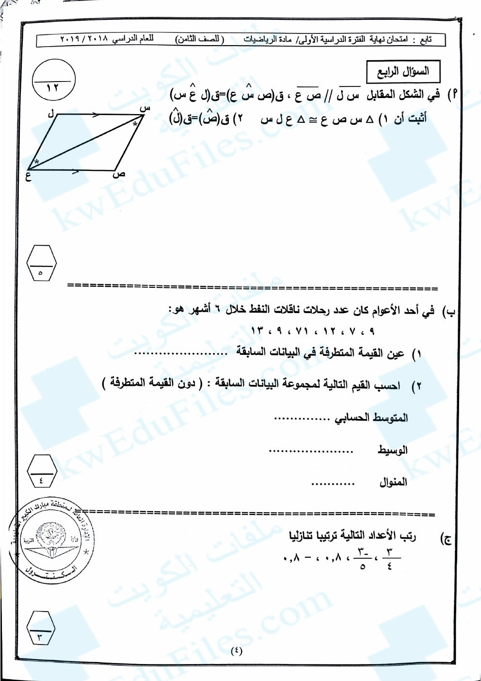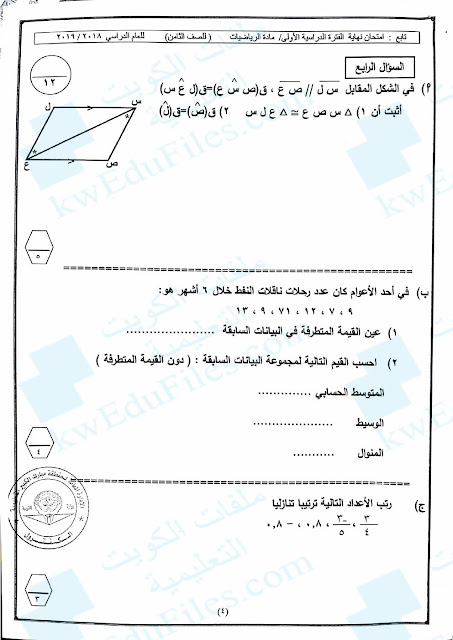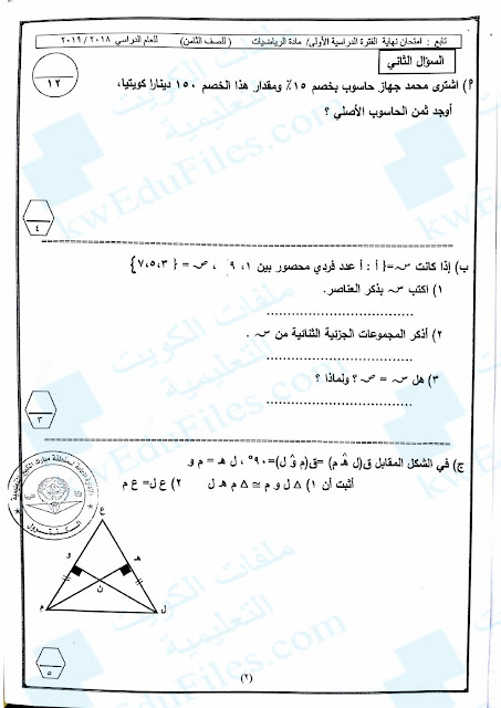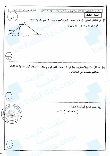 الفصل الاول من العام الدراسي 2018/2019وفق المنهاج الكويتي