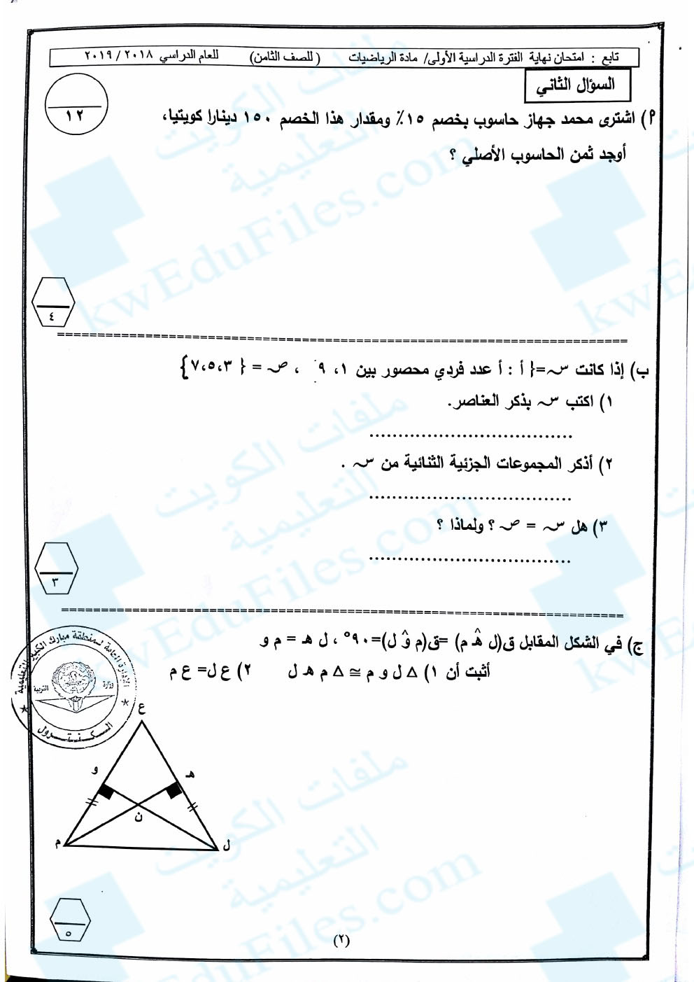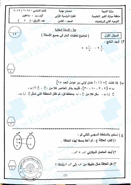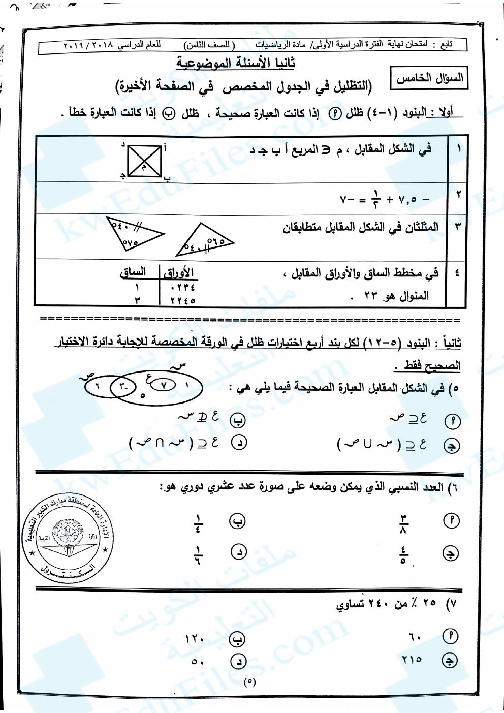 أحدث ملفات الصف الثامن, رياضيات, الفصل الأول