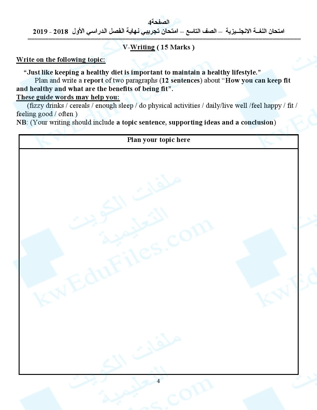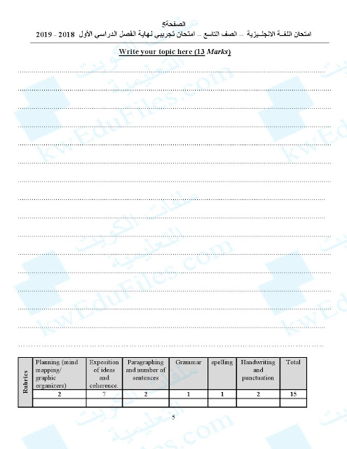 9. نموذج إجابة منطقة الفروانية التعليمية