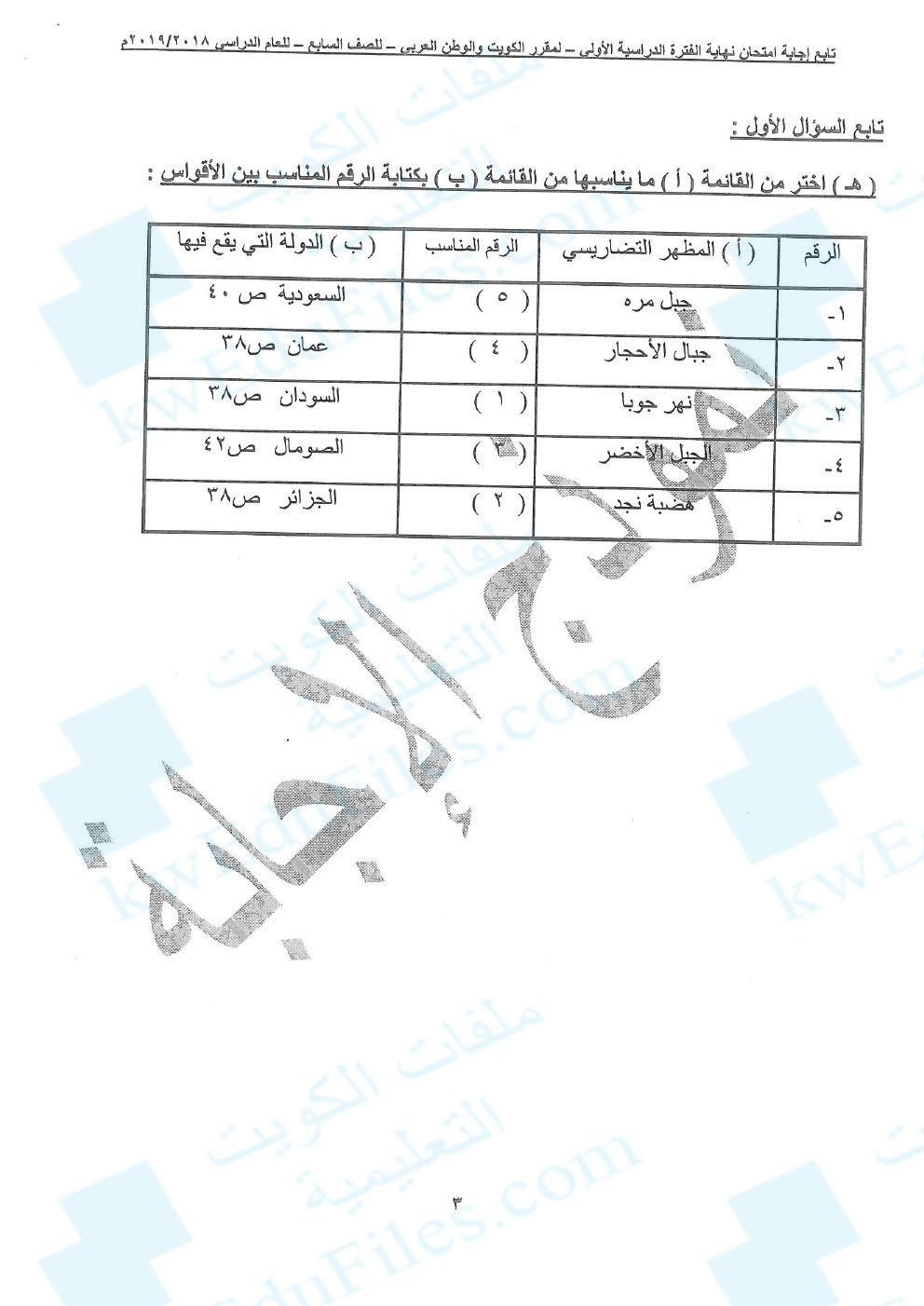 12. نموذج إجابة منطقة الجهراء التعليمية
