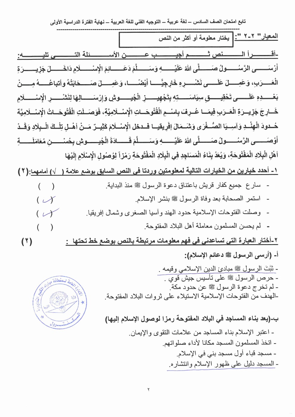 | أكثر خمس كلمات زيارة اليوم بحسب: لغة عربية - الصف السادس - الفصل الأول | |