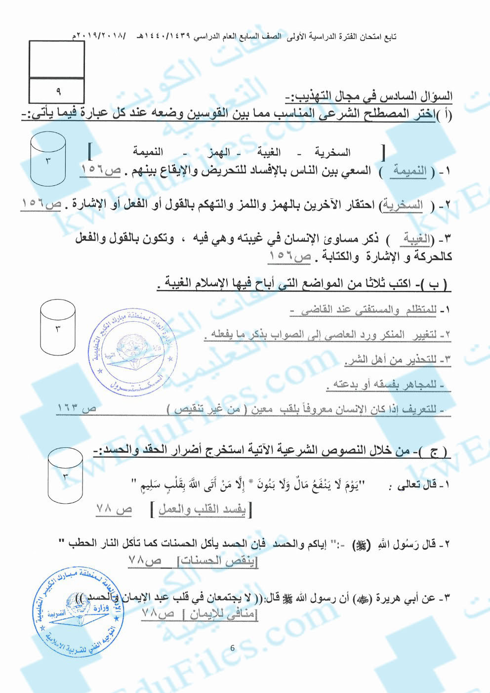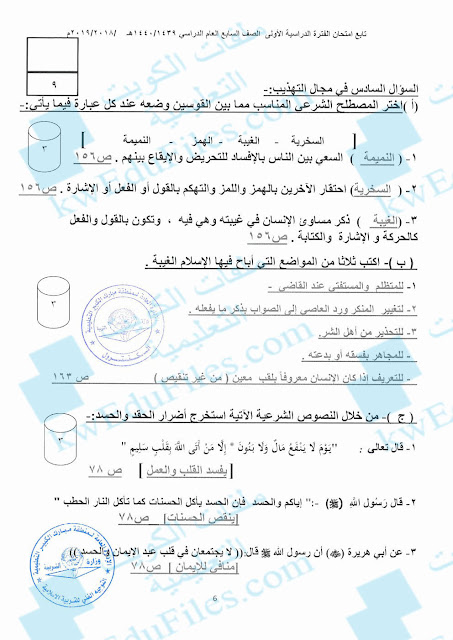 9. نموذج إجابة منطقة الجهراء التعليمية