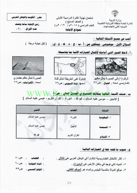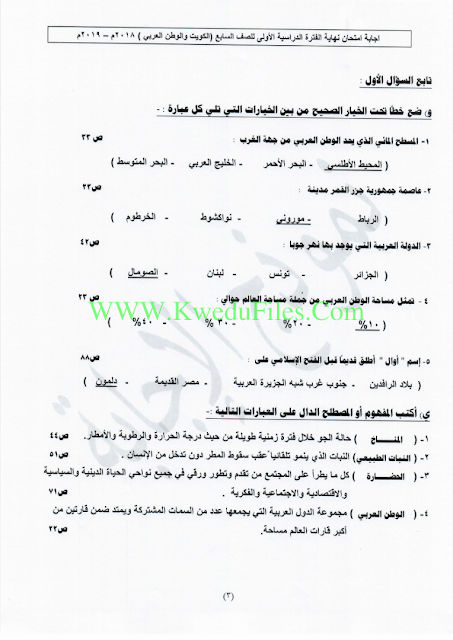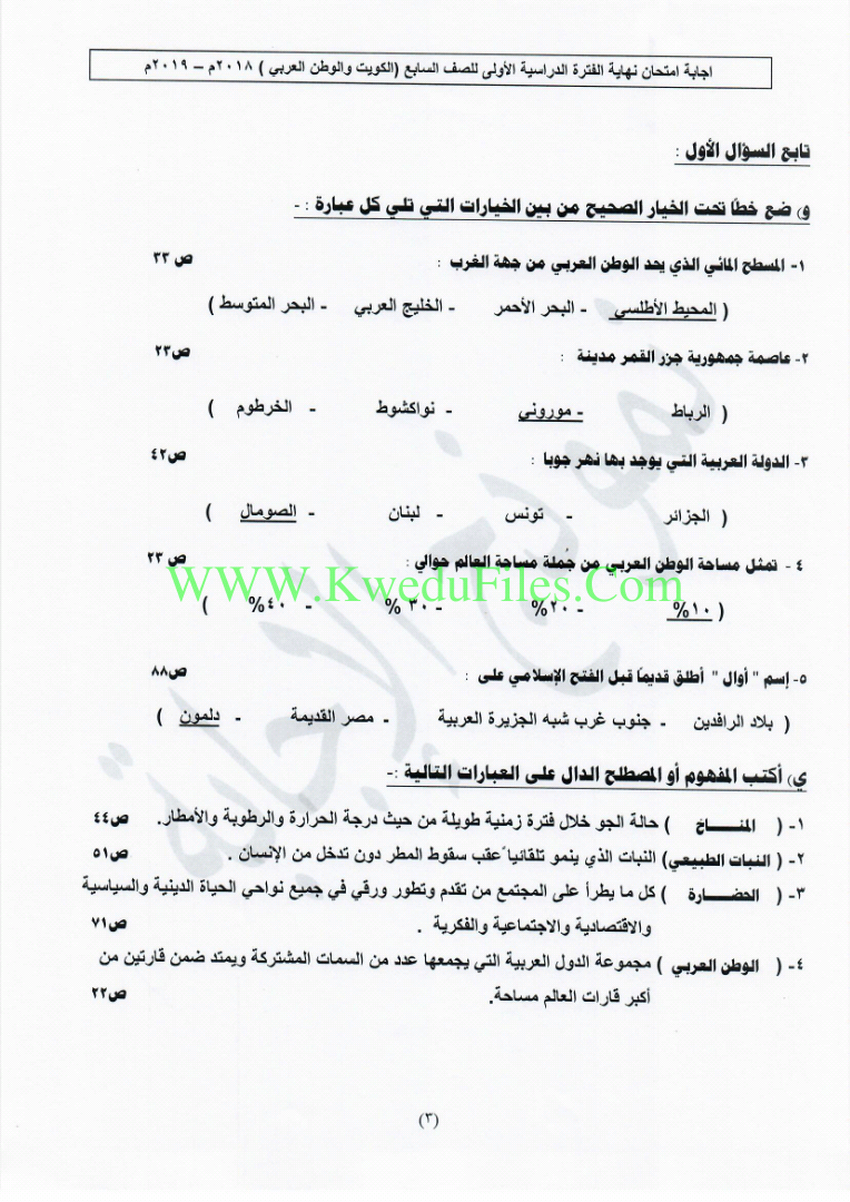 نموذج اجابة الفروانية في مادة الاجتماعيات2018/, الصف السابع, اجتماعيات, الفصل الأول, 2018-2019 - المناهج الكويتية
