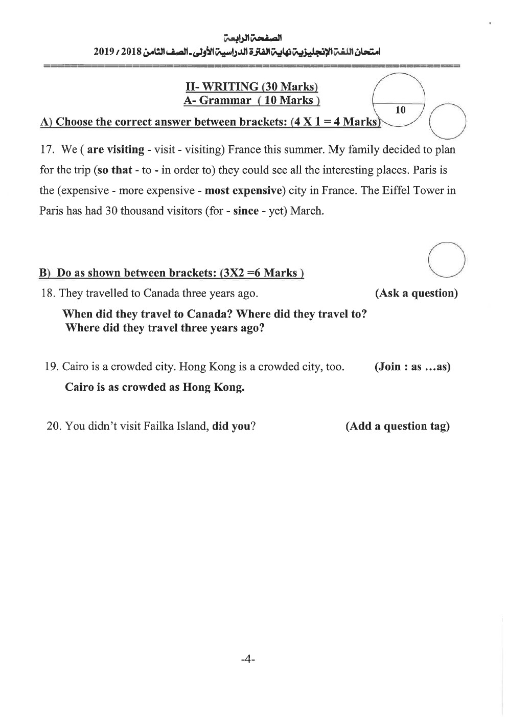 نموذج اجابة حولي 2018/ - إعداد: منطقة حولي التعليمية