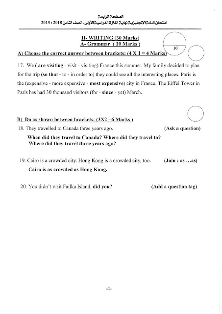 8. نموذج إجابة اختبار منطقة مبارك الكبير التعليمية