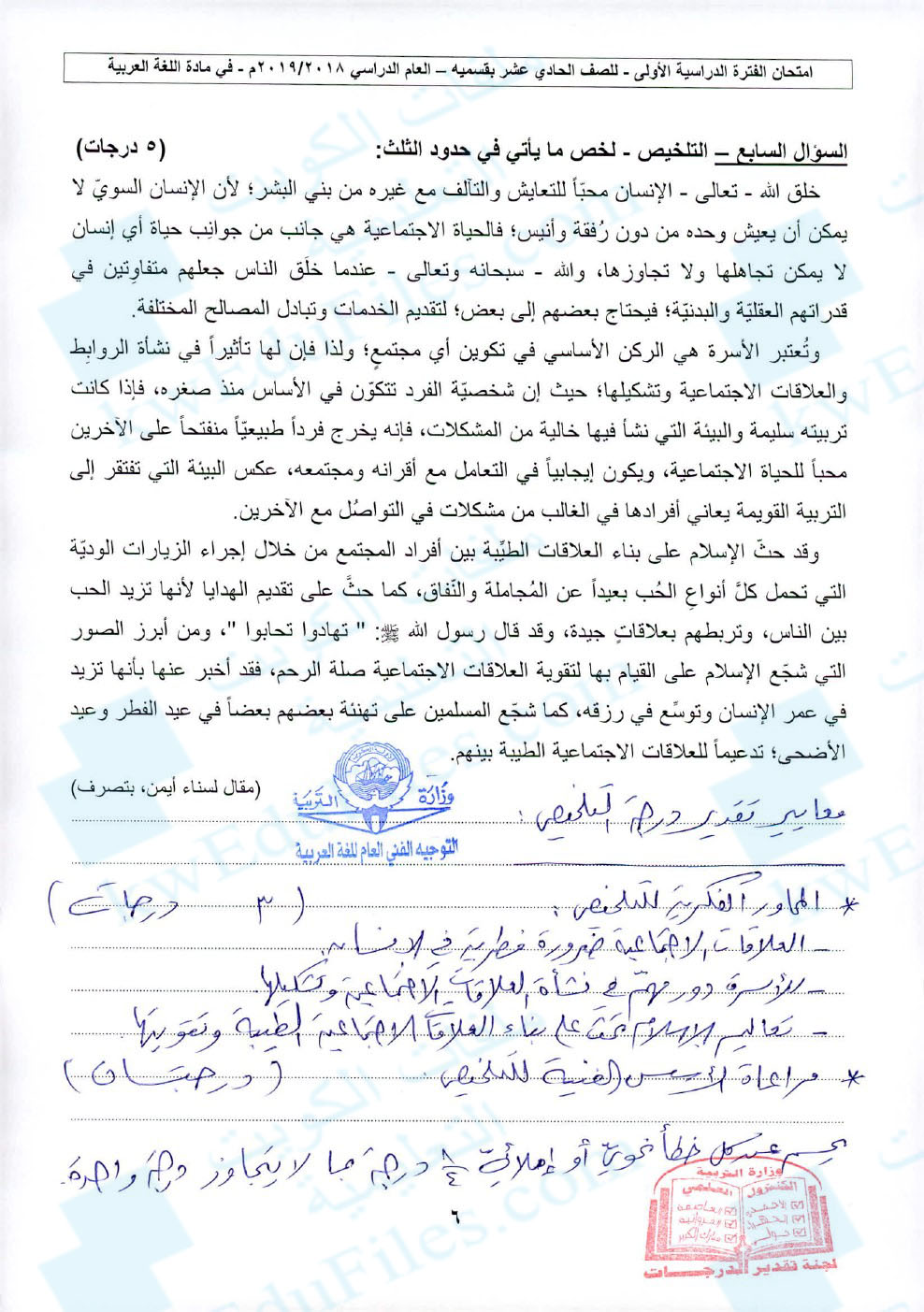 أحدث ملفات الصف الحادي عشر, لغة عربية, الفصل الأول