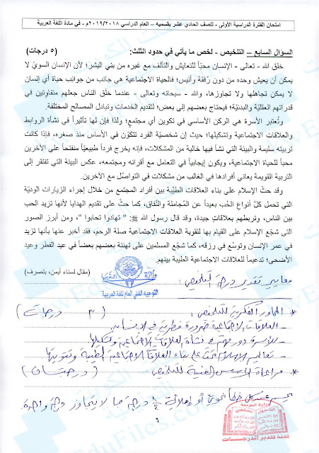 نموذج اجابة اللغة العربية 2018/ - إعداد: التوجيه الفني العام للغة الانجليزية