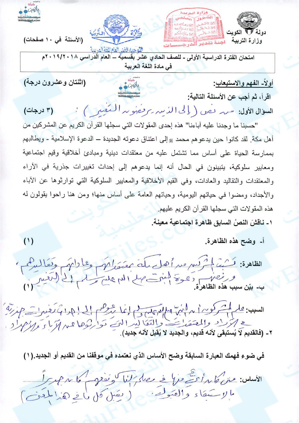 تم إيجاد الملف: نموذج اجابة اللغة العربية 2018/