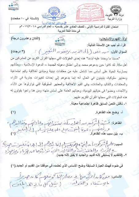 أنت هنا: موقع المناهجالمناهج الكويتية الصف الحادي عشر لغة عربية الفصل الأول حلول