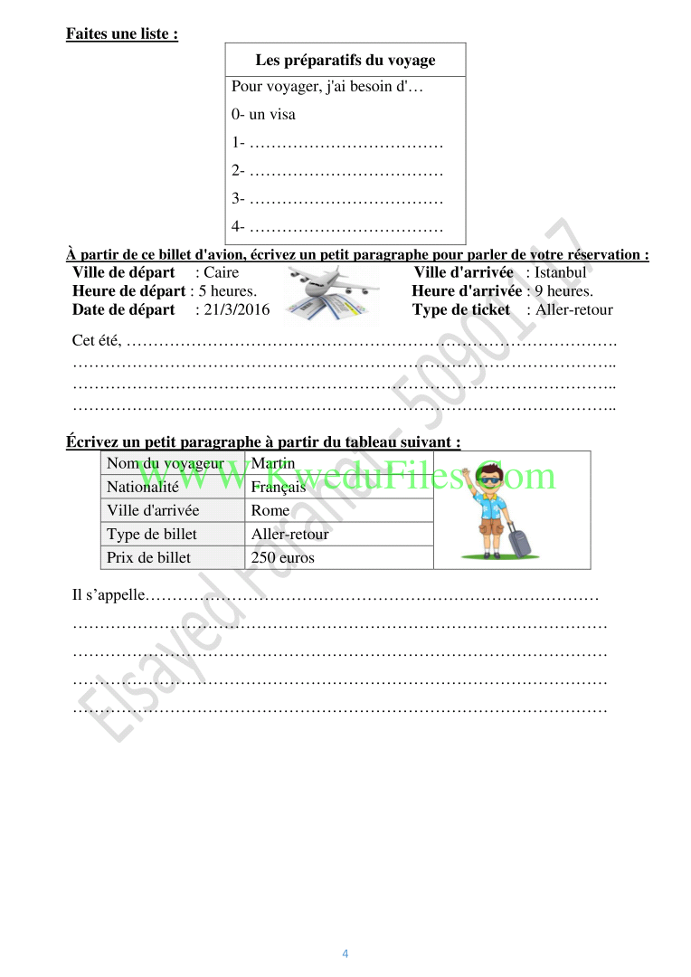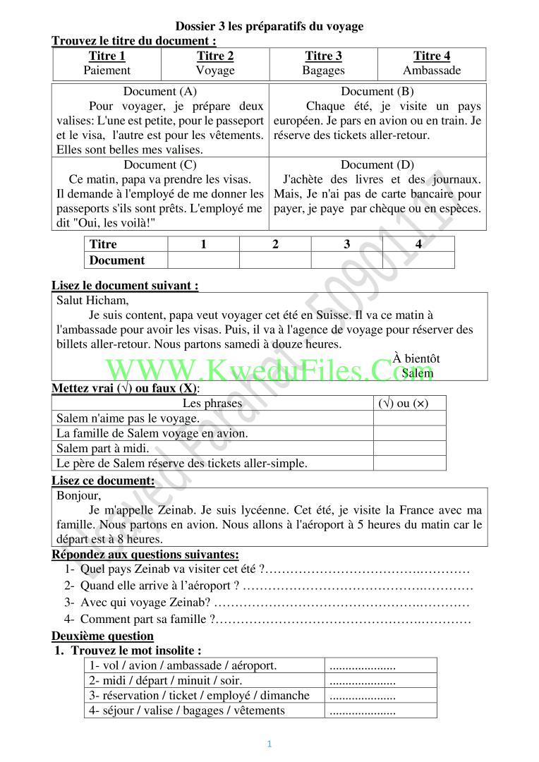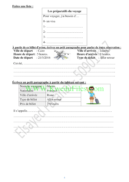 4اوراق في مادة اللغة الفرنسية للصف الحادي عشر الادبي للكورس الاول تتضمن نموذج اختبار الوحدة الثالثة