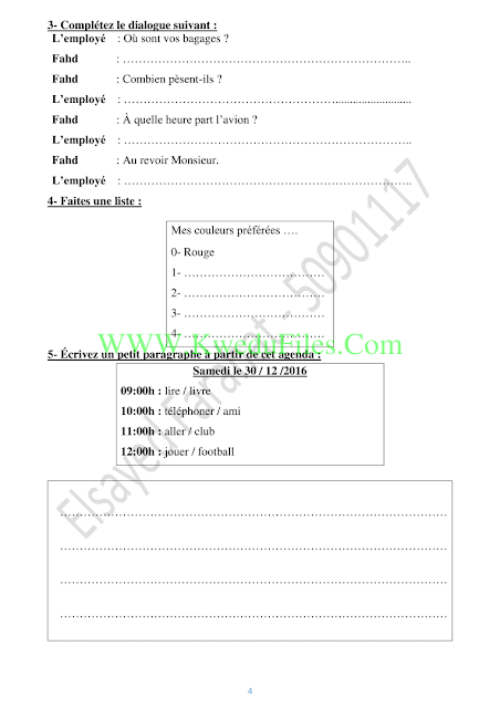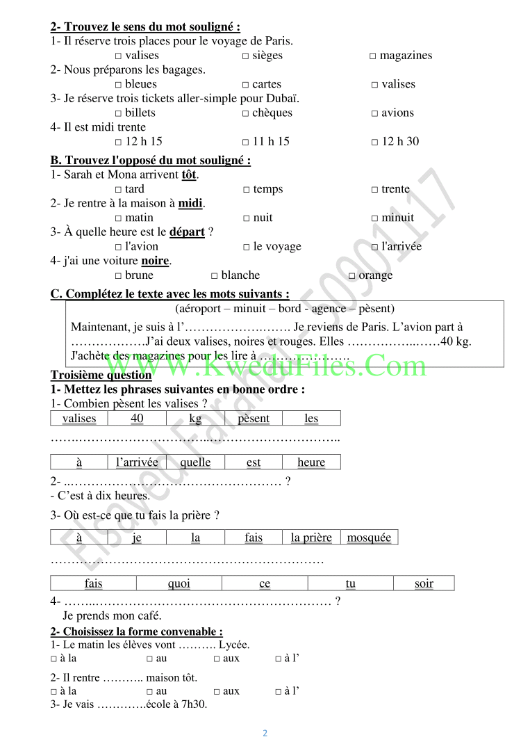 نموذج اجابة اختبار الوحدة الرابعة في مادة اللغة الفرنسية | ||