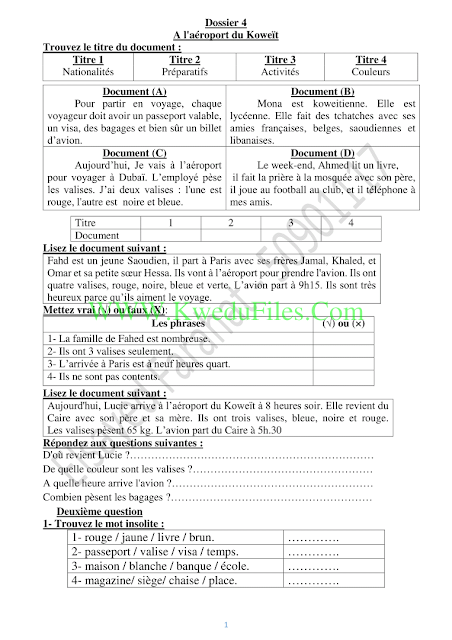معلومات الملف: 4اوراق في مادة اللغة الفرنسية للصف الحادي عشر للكورس الاول تتضمن نموذج اختبار الوحدة الرابعة | ||