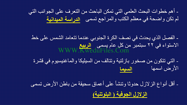 المراجعة النهائية واهم الاسئلة المتوقعة للاختبار في مادة الجغرافيا | ||